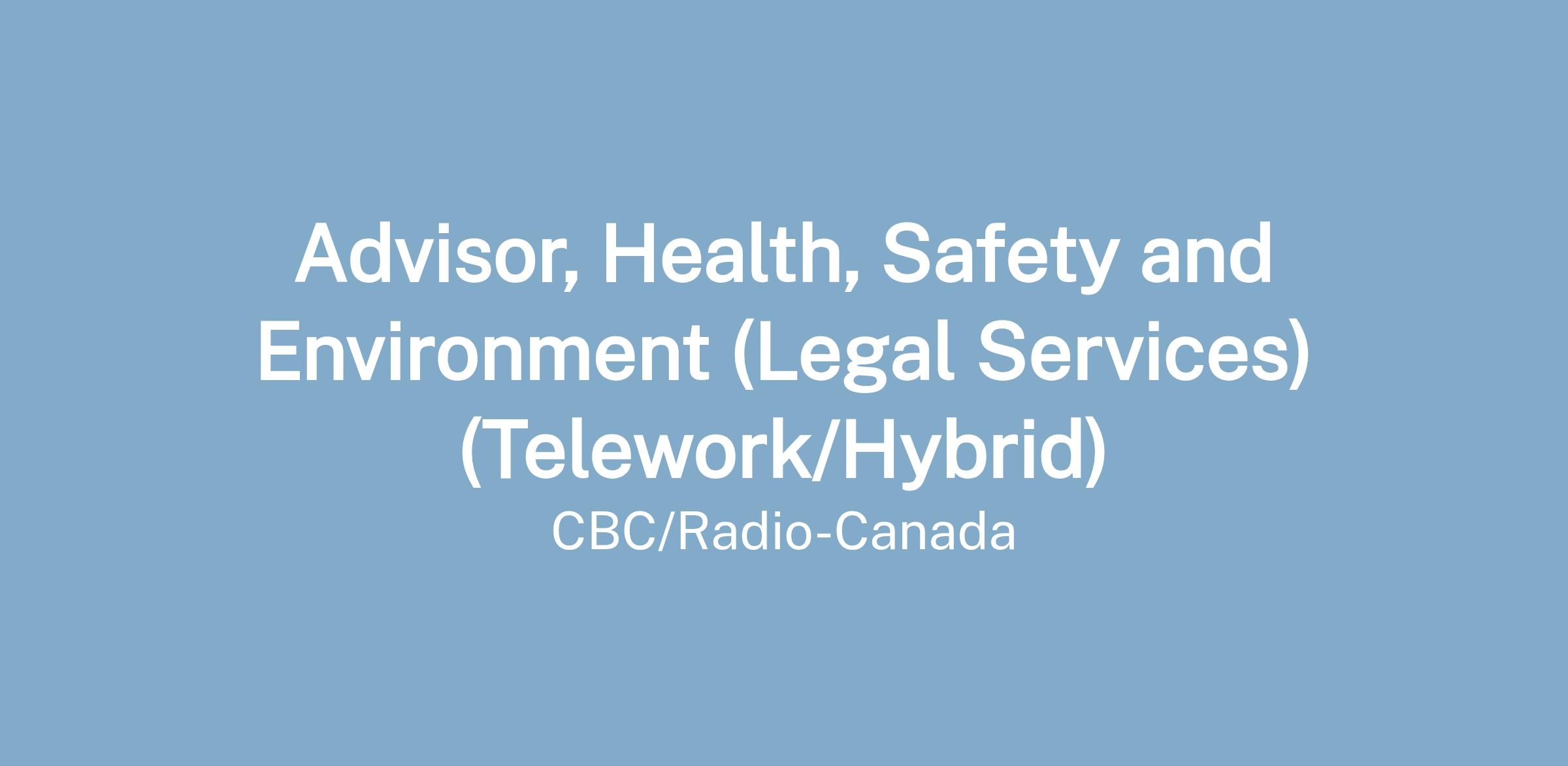 Advisor, Health, Safety and Environment (Legal Services) (Telework/Hybrid)Status of Employment:
