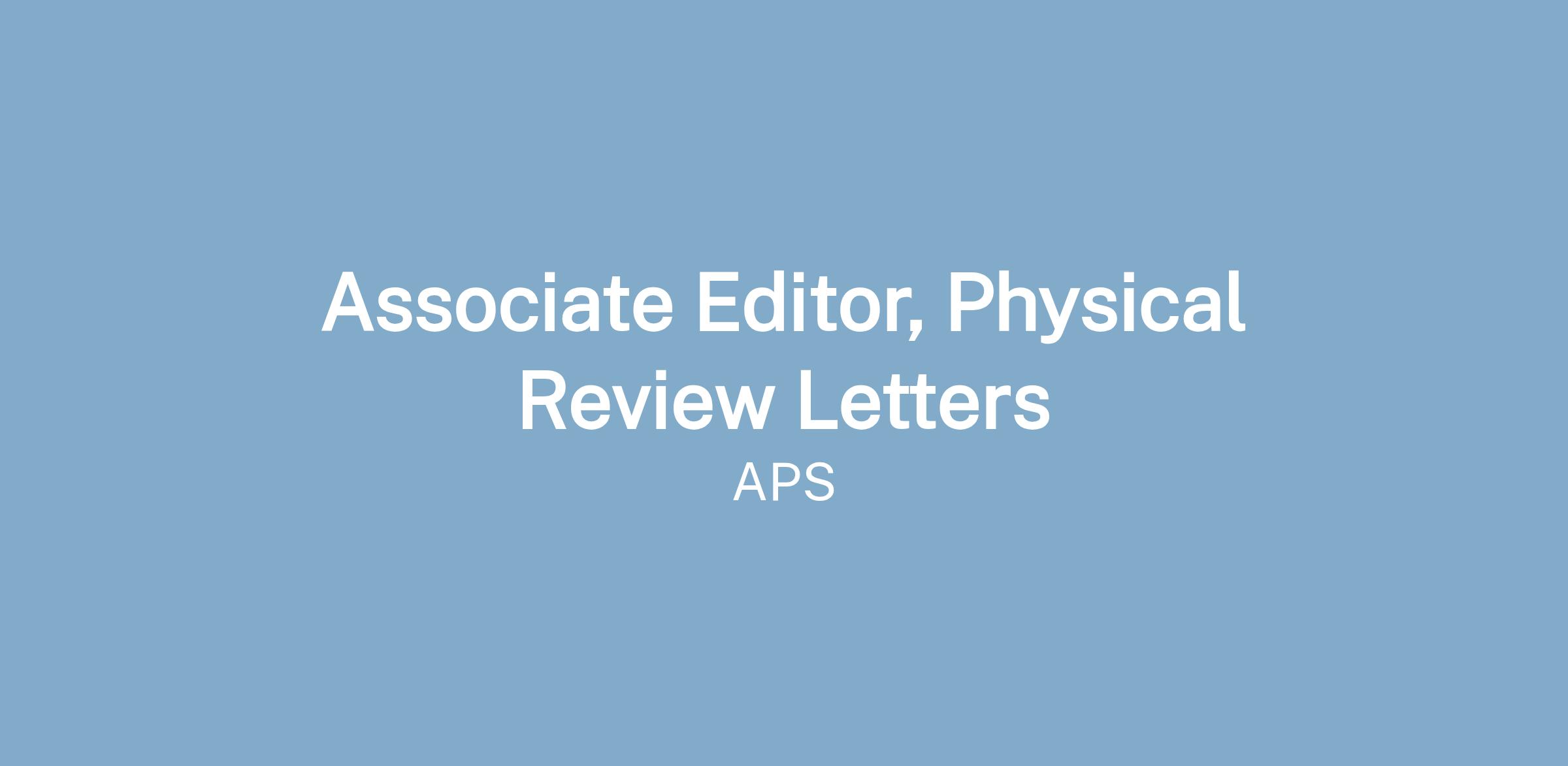Associate Editor, Physical Review Letters