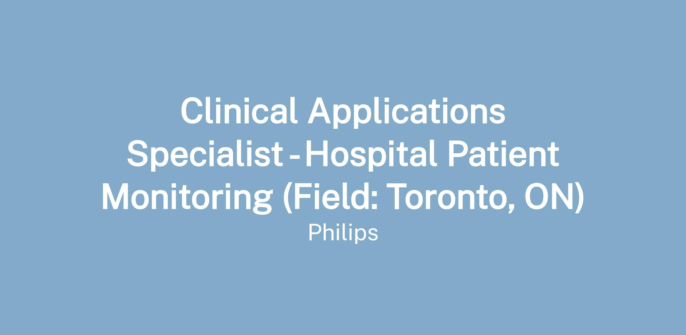 Clinical Applications Specialist - Hospital Patient Monitoring (Field: Toronto, ON)
