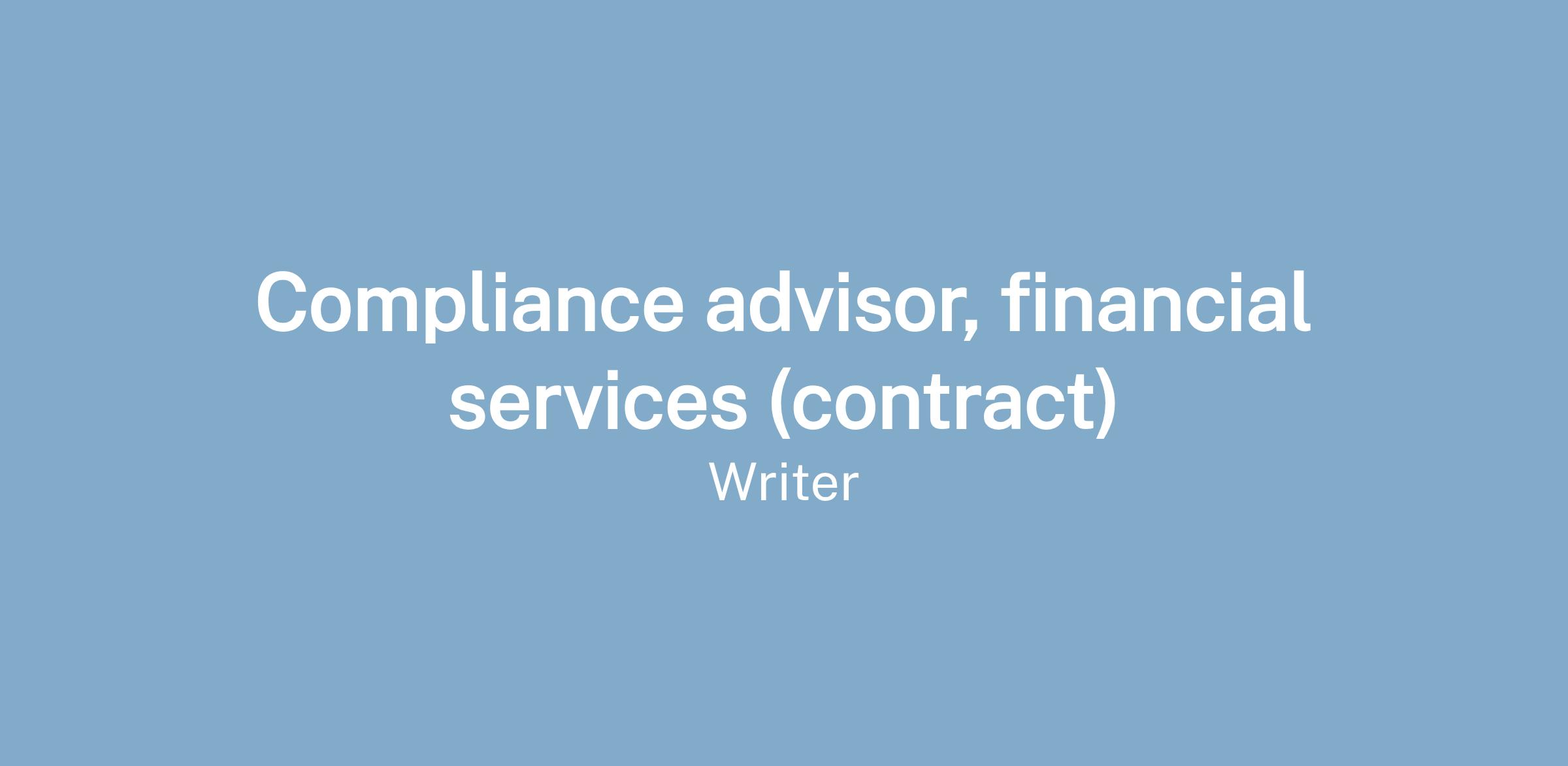 We are seeking an experienced financial services compliance professional to advise on integrating regulatory compliance capabilities into our product.