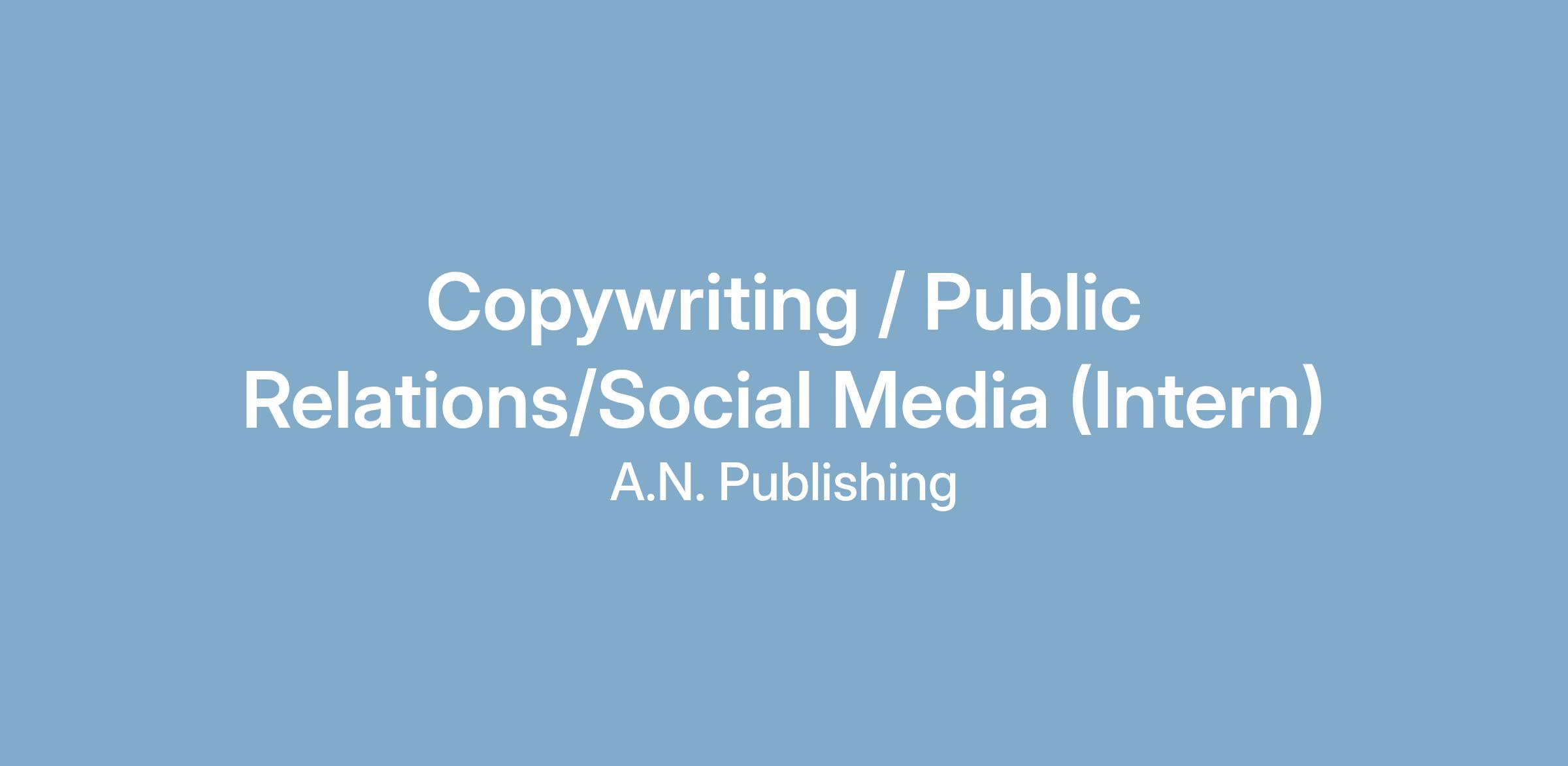 The Public Relations /Copywriting/Social Media intern will be instrumental in building digital brand awareness through marketing materials and developing and engaging clients for the A. N. Publishing brands.