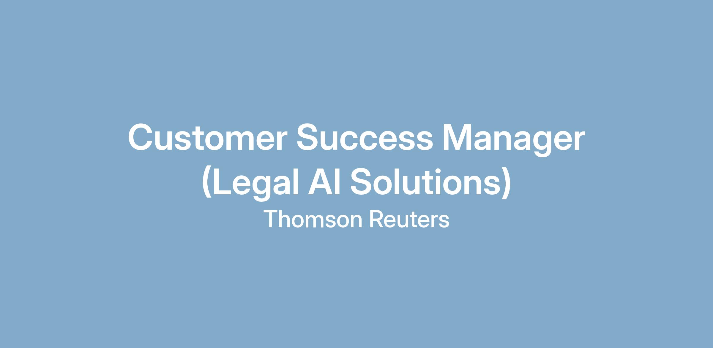 Thomson Reuters is transforming the legal industry with unmatched legal content, expertise, and innovative AI technology. Thomson Reuters acquired a leading AI startup, Casetext in 2023 and scaled up to become one of the leading AI solution providers to law firms and corporations. As part of our transformation, we are building a world-class Customer Success organization to ensure our customers achieve their goals and unlock the full value of our solutions.