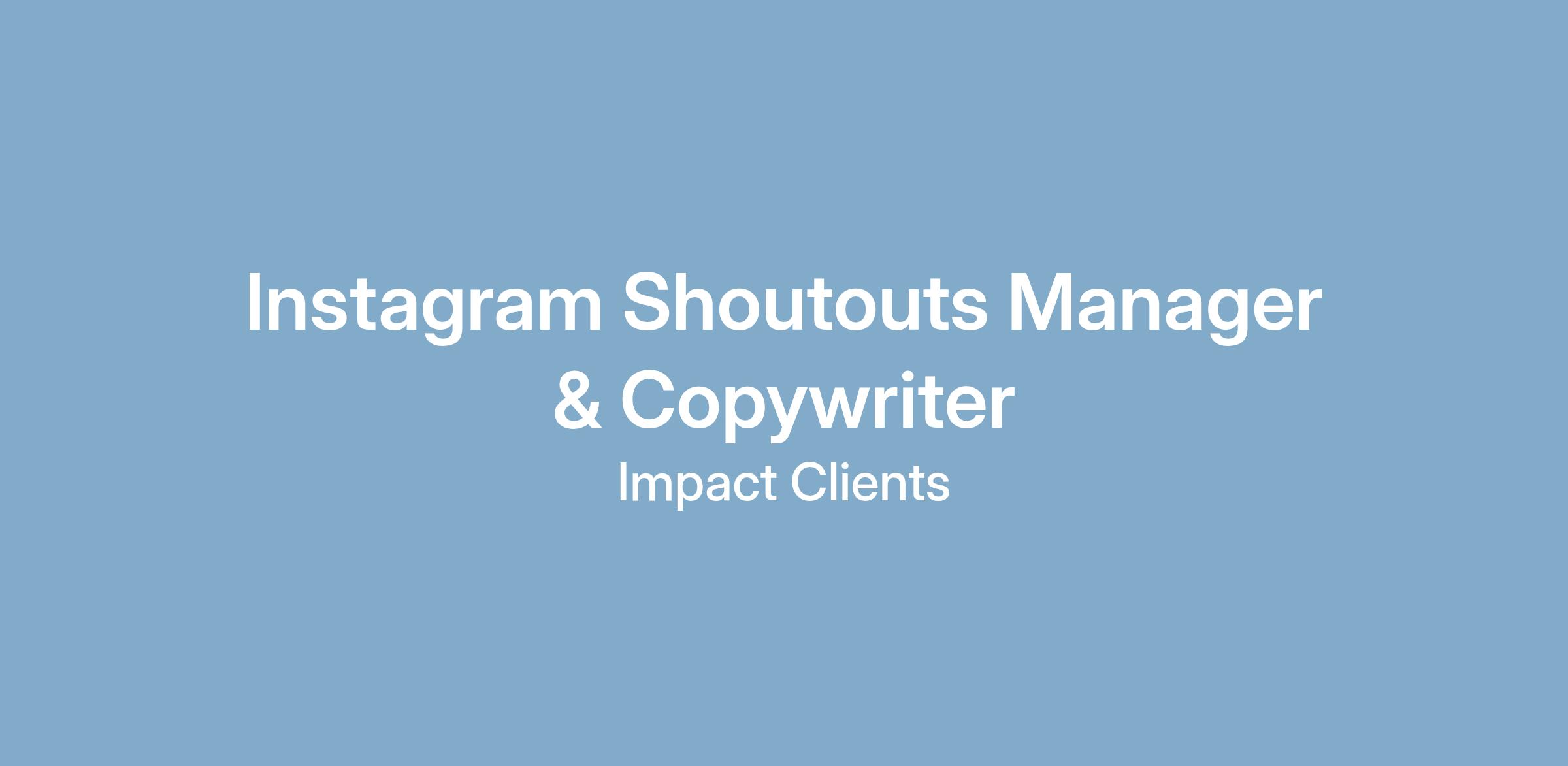 We’re hiring a Instagram Shoutout specialist.