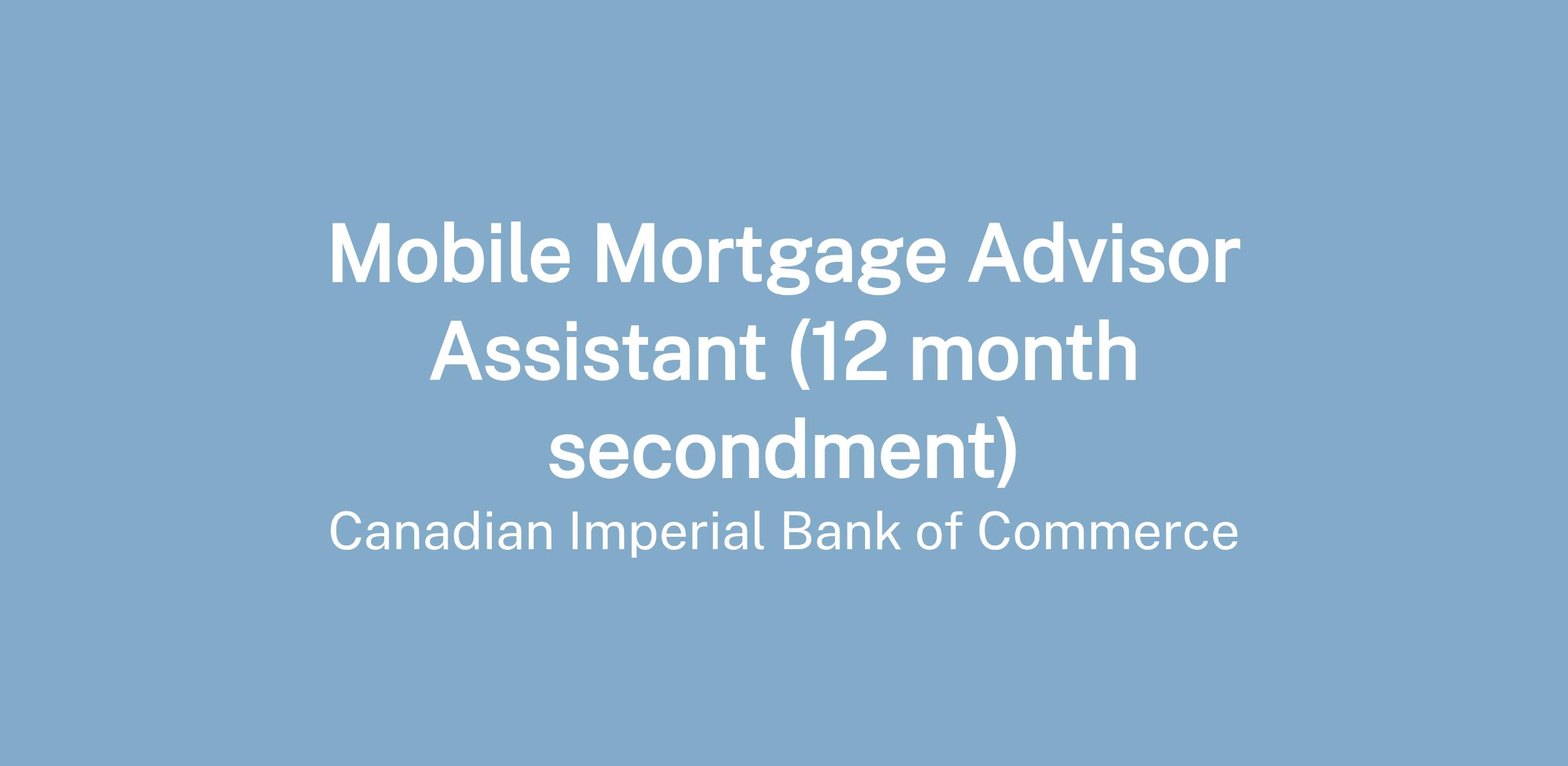 You’ll be joining CIBC’s Personal and Small Business Banking team. You'll be working in a flexible, fast-paced environment where you'll play a key role in helping your clients achieve their goal of home ownership. As a Mobile Mortgage Advisor Assistant, you'll assist the Mortgage Advisor in building their own business. This role operates within a home office environment with the provision of a CIBC laptop.