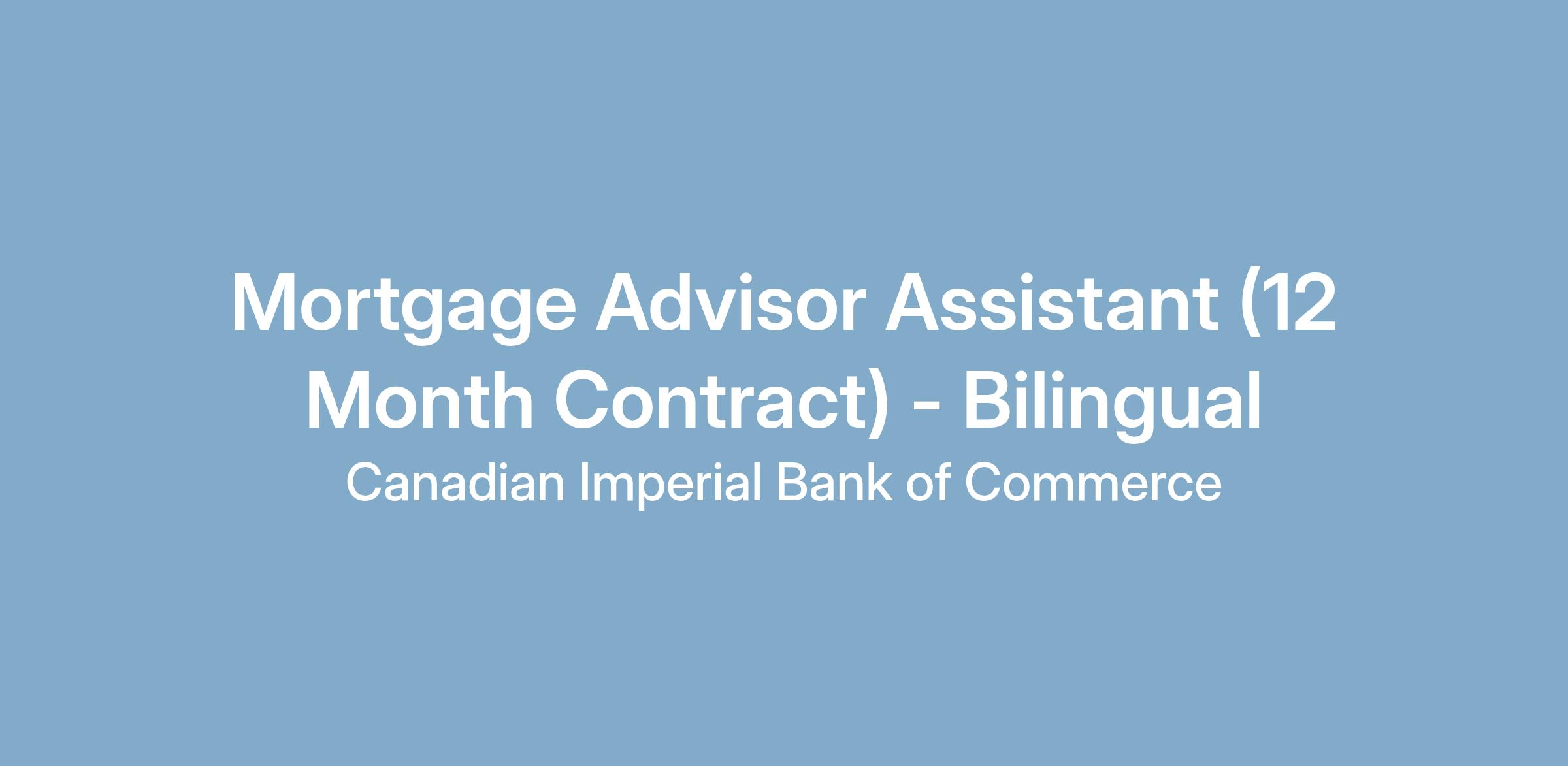 You’ll be joining CIBC’s Personal and Small Business Banking team. You'll be working in a fast-paced environment where you'll play a key role in helping your clients achieve their goal of home ownership. As a Mobile Mortgage Advisor Assistant, you'll assist the Mortgage Advisor in building their own business. This role operates within a home office environment with the provision of a CIBC laptop.
