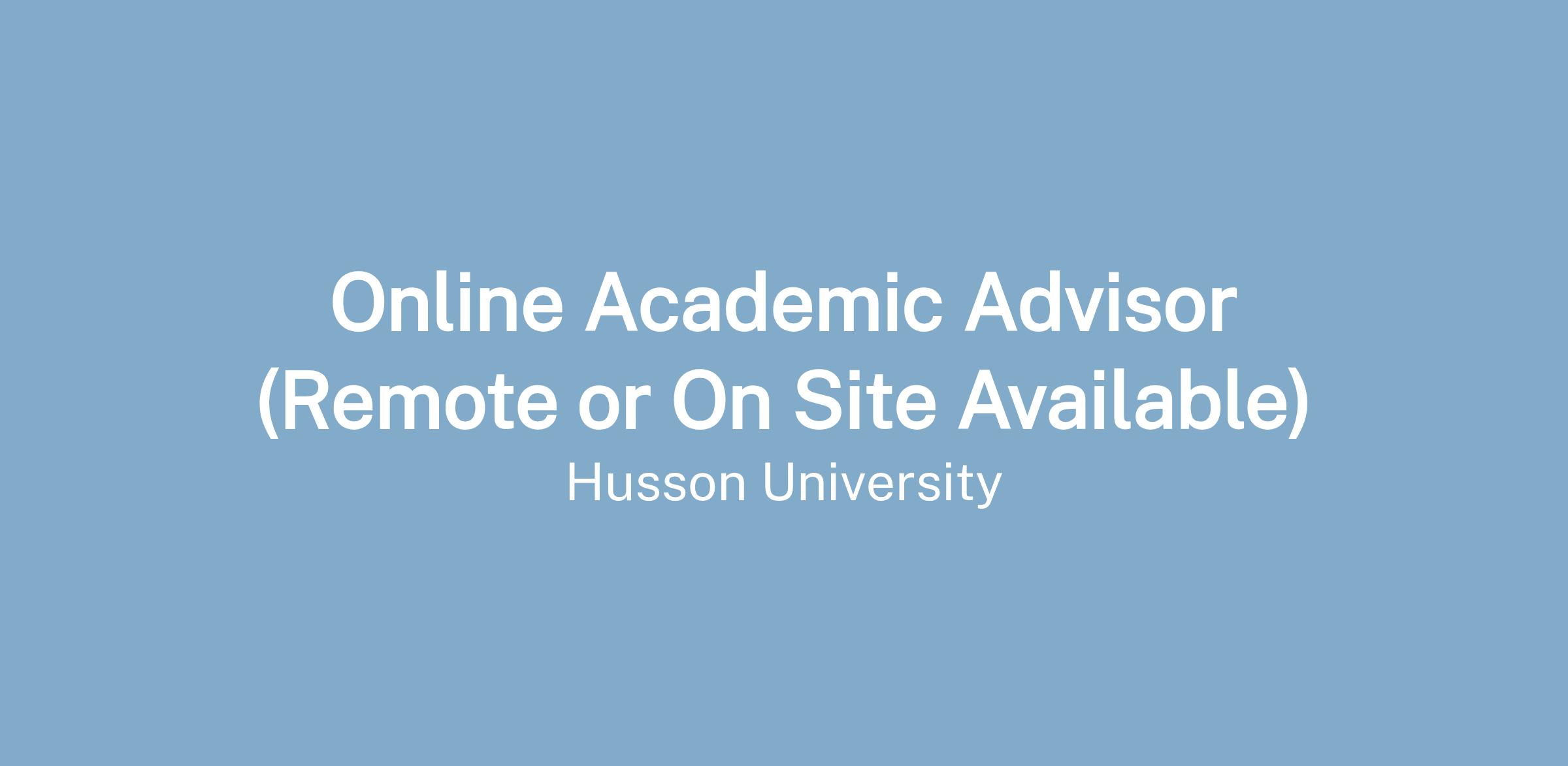 Husson University’s Online Academic Advisors oversee retention, registration, academic planning, and advising for all students enrolled in online and distance education programs. An Academic Advisor’s primary responsibility is to provide superb student support, academic advising, and to meet established online program retention goals. As an Academic Advisor, you will act as the coach and mentor for students throughout their program. You will be there to inspire, motivate, and challenge them.