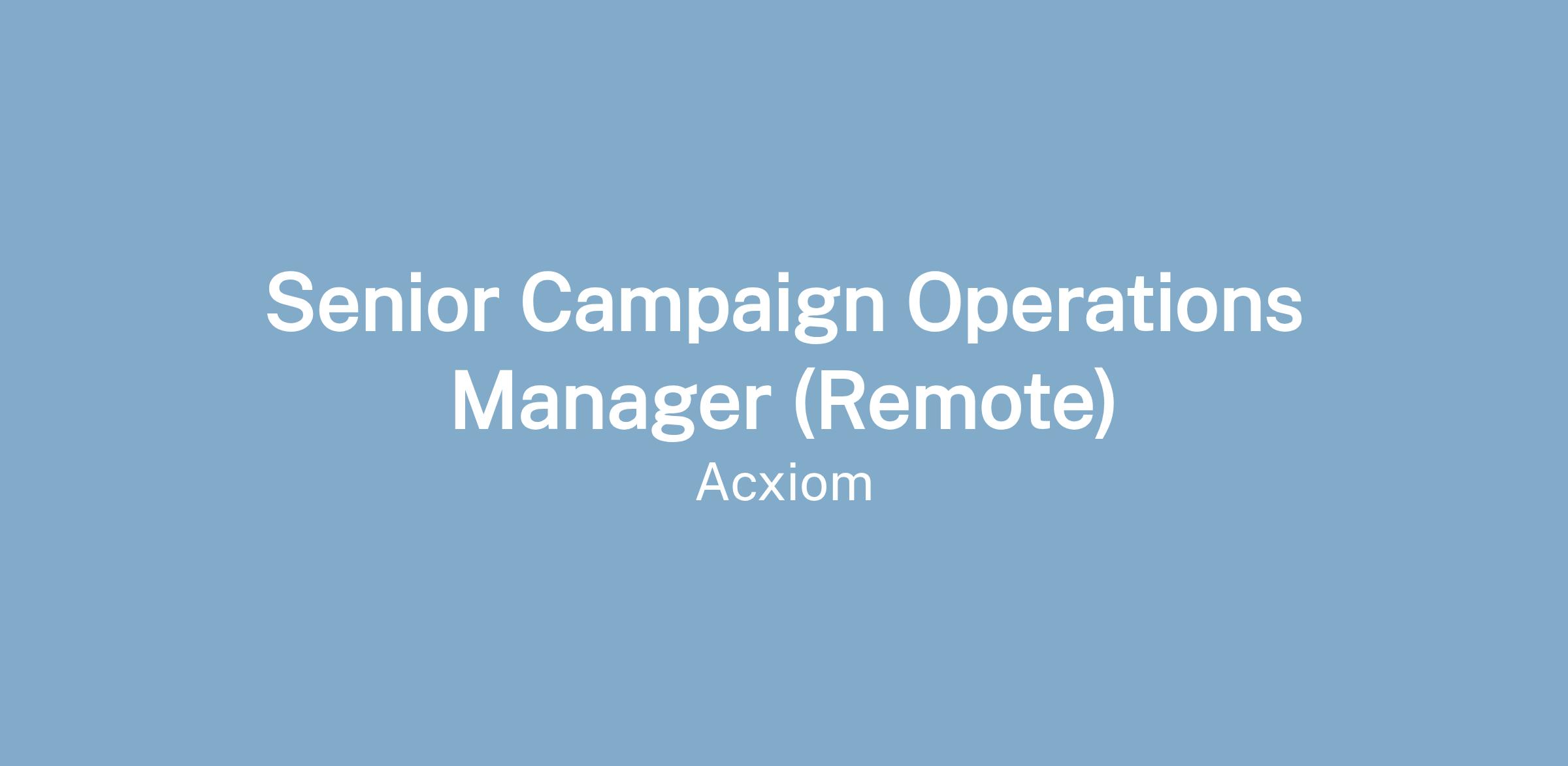 Attention Colorado, California, Connecticut, Maryland, Nevada, New Jersey, New York City, Ohio, Rhode Island, and Washington Applicants: This position is not located in the aforementioned locations but applications for remote work may be considered. For information about this role under state or local equal pay or pay transparency laws, please contact recruit@acxiom.com.