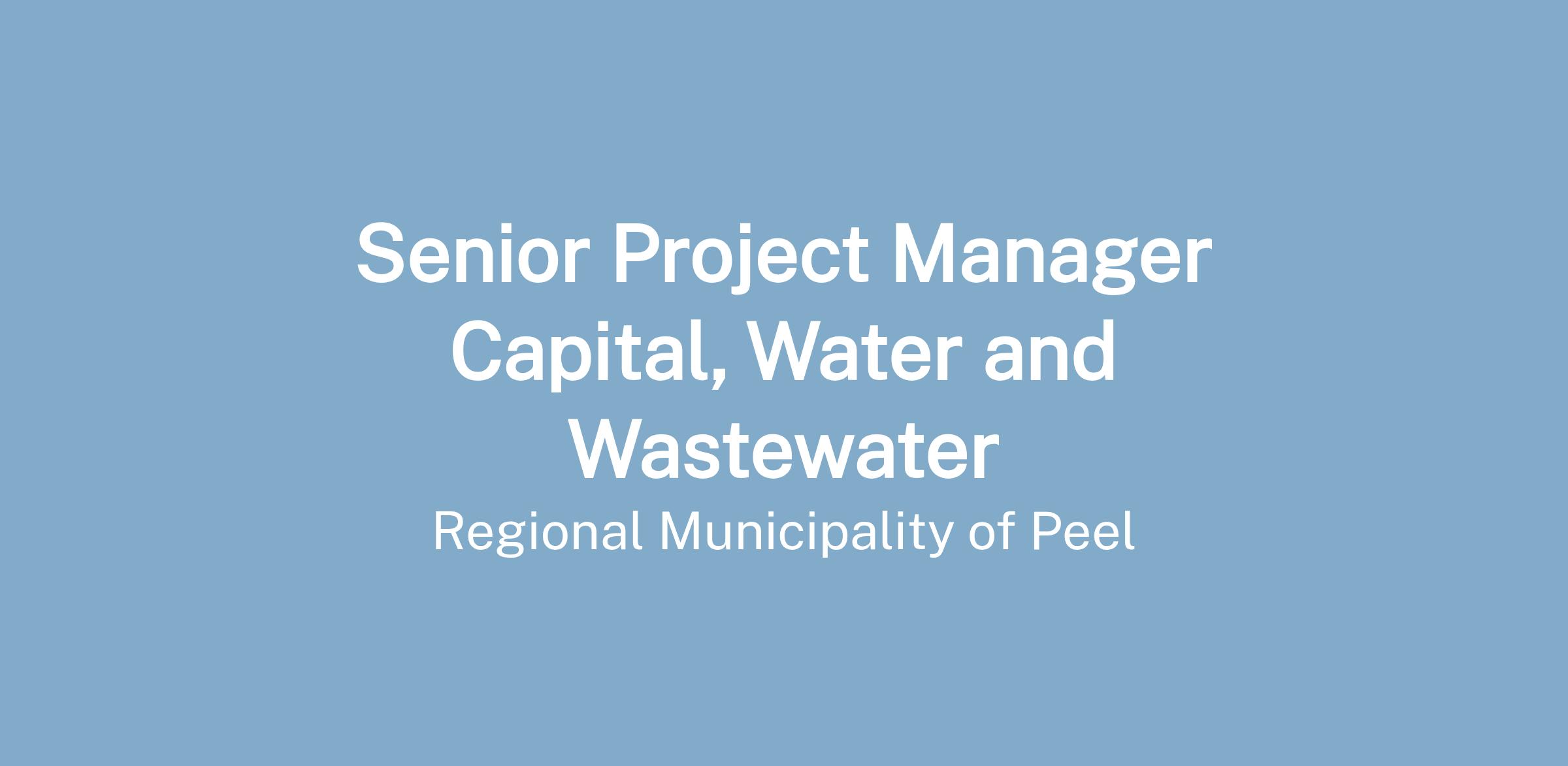 Senior Project Manager Capital, Water and Wastewater