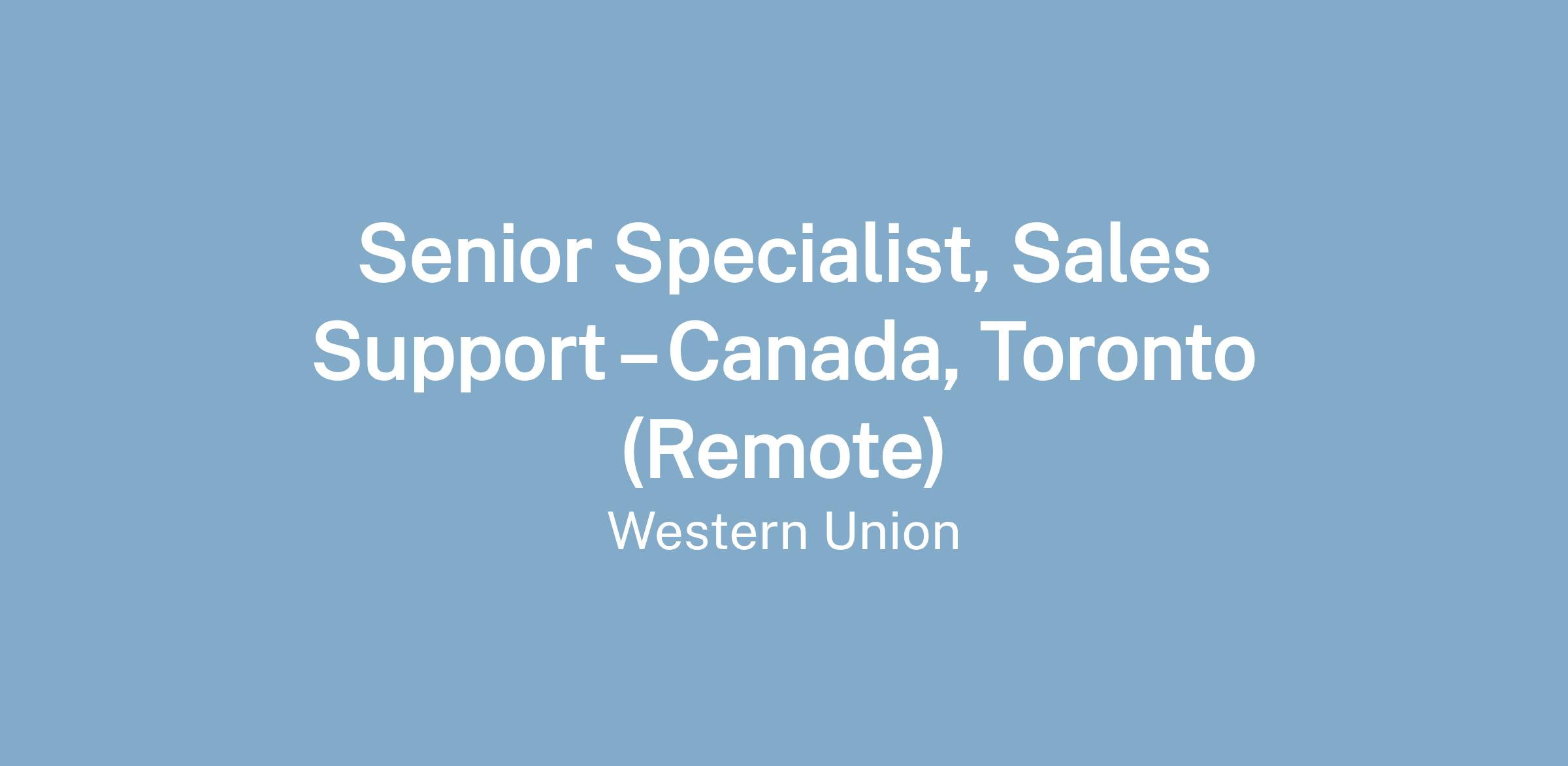 Senior Specialist, Sales Support – Canada, Toronto (Remote)