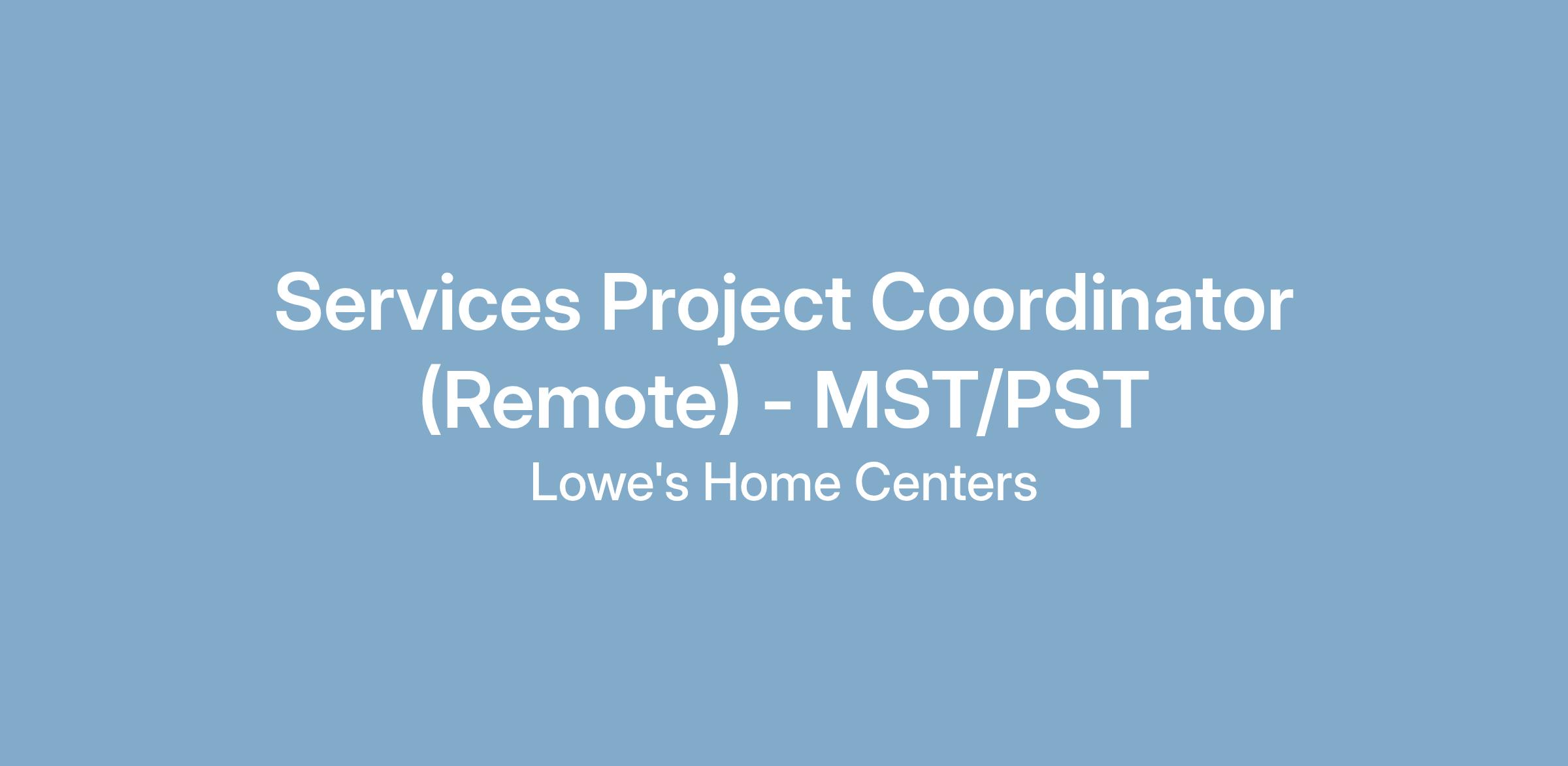 Your ImpactThe primary purpose of the Services Project Coordinator is to facilitate end-to-end oversight and support to customers who purchase installation job(s). The Services Project Coordinator is responsible for tracking progress, documenting all interactions, addressing issues and communicating with customers, service providers, stores and vendors in a timely manner to keep the job going. To accomplish this, the Services Project Coordinator must have excellent customer service and problem-solving skills with the ability to adapt to change. The Services Project Coordinator will collaborate directly with customers, service providers, stores and peers to deliver the desired customer experience.