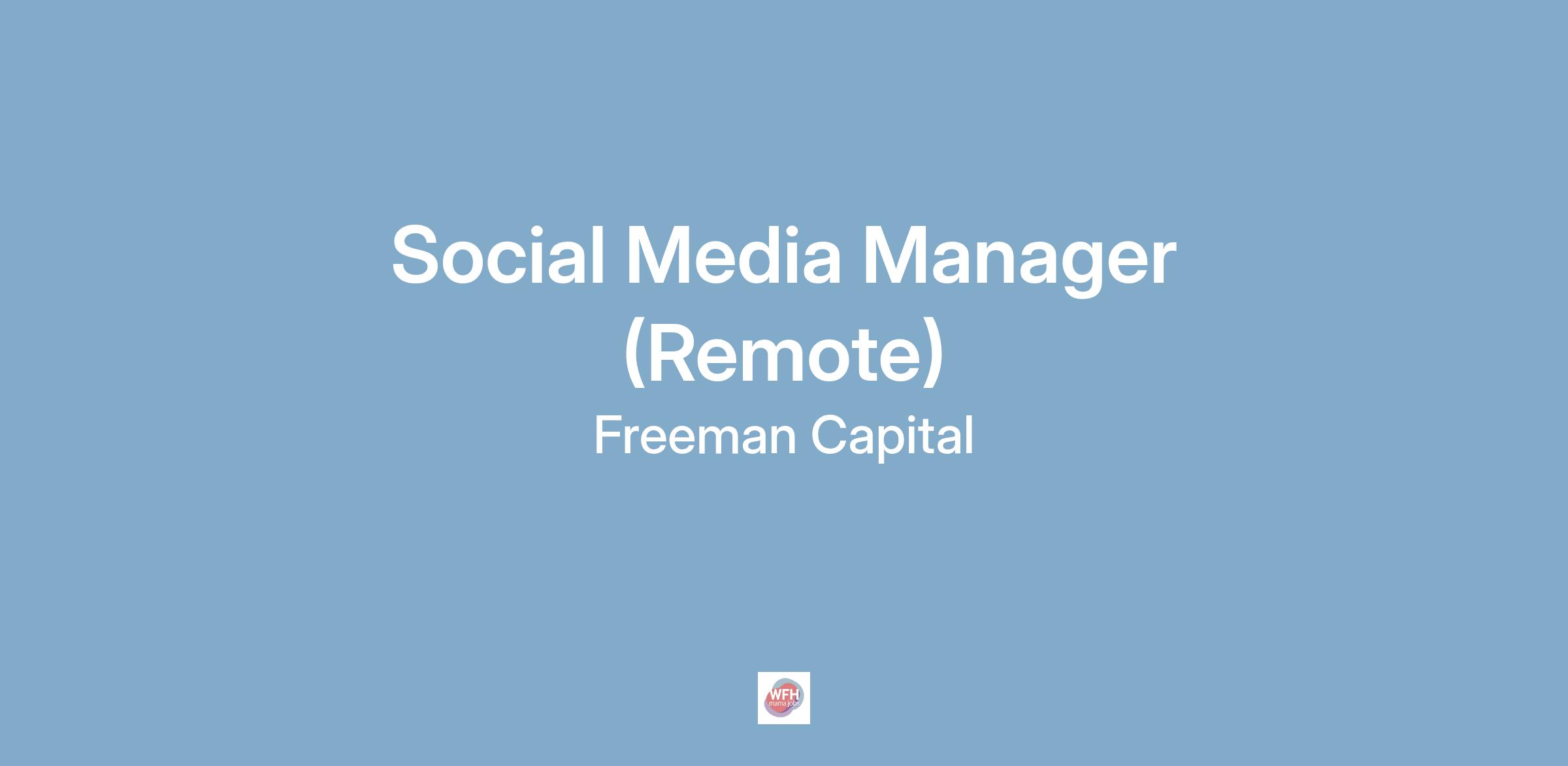 Freeman Capital is seeking a Social Media Manager who will assist in the development and implementation of its social media strategy specifically with digital community content management and distribution on our various social media platforms. Our goal is to continue to build our community that is welcoming, educational, relevant and will ultimately turn positive word-of-mouth into secured customers. We work 100% remotely using tools like Slack/Zoom.