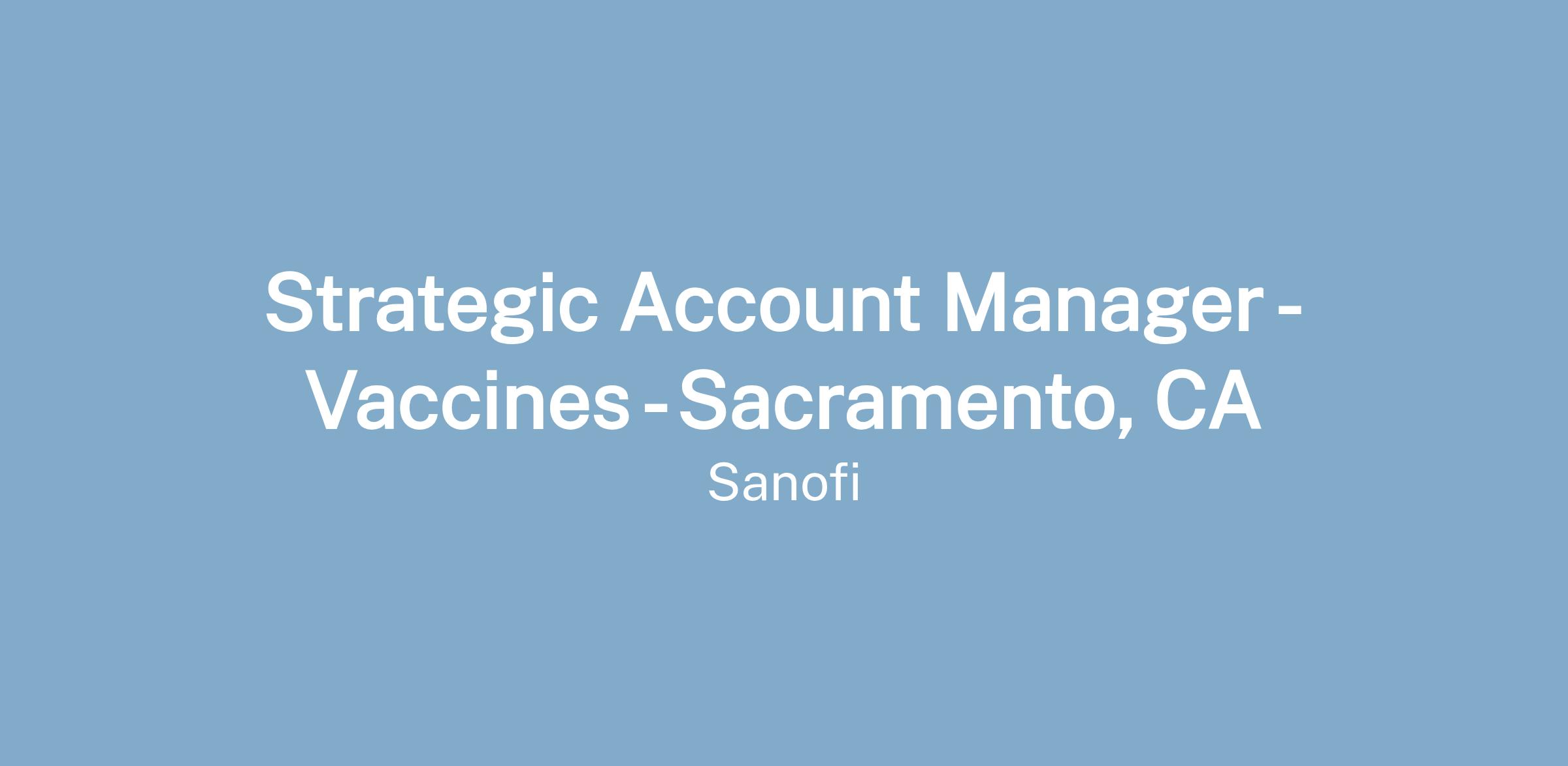 Job Title: Strategic Account Manager - Vaccines - Sacramento, CA