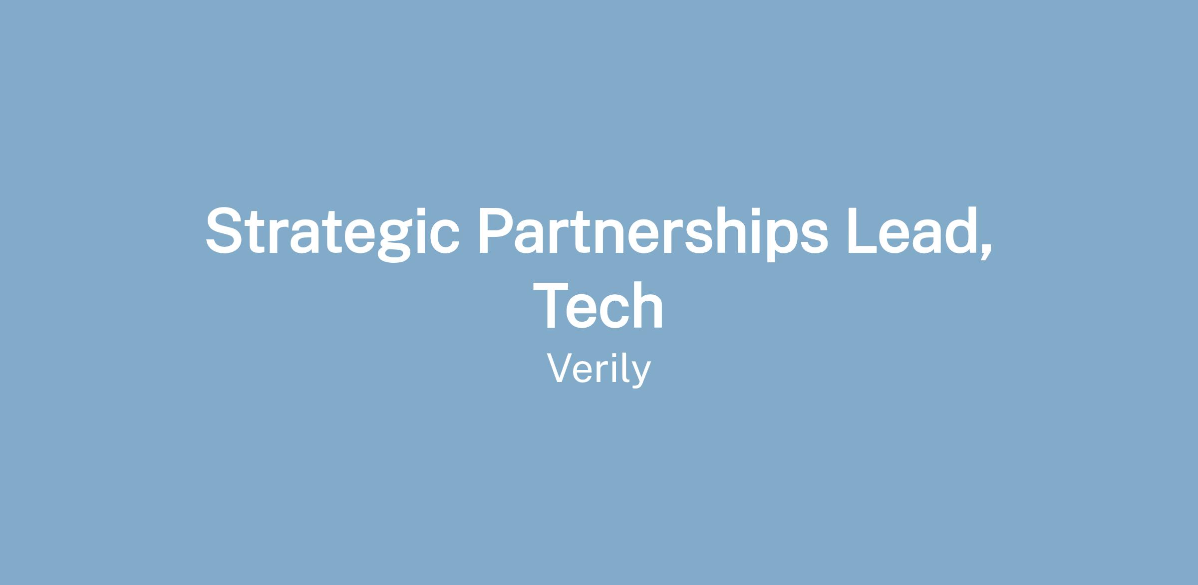 Verily Life Sciences is seeking a Strategic Partnerships Lead to enable and accelerate Verily’s next phase of commercial growth, with a focus on the establishing and maintaining strategic partners with major technology organizations (such as those with NVIDIA). Reporting to the VP, Business Development & Strategic Partnerships, you will join the team responsible for sourcing and interacting directly with prospective strategic partners, working to develop market making collaborations across our product portfolio and key customer segments. You will work cross functionally across each Verily commercial function and with various teams and colleagues across Verily. This role will require you to be flexible and nimble and aggressively grow the various business lines via Tech partnerships to help establish Verily as the premier solution.