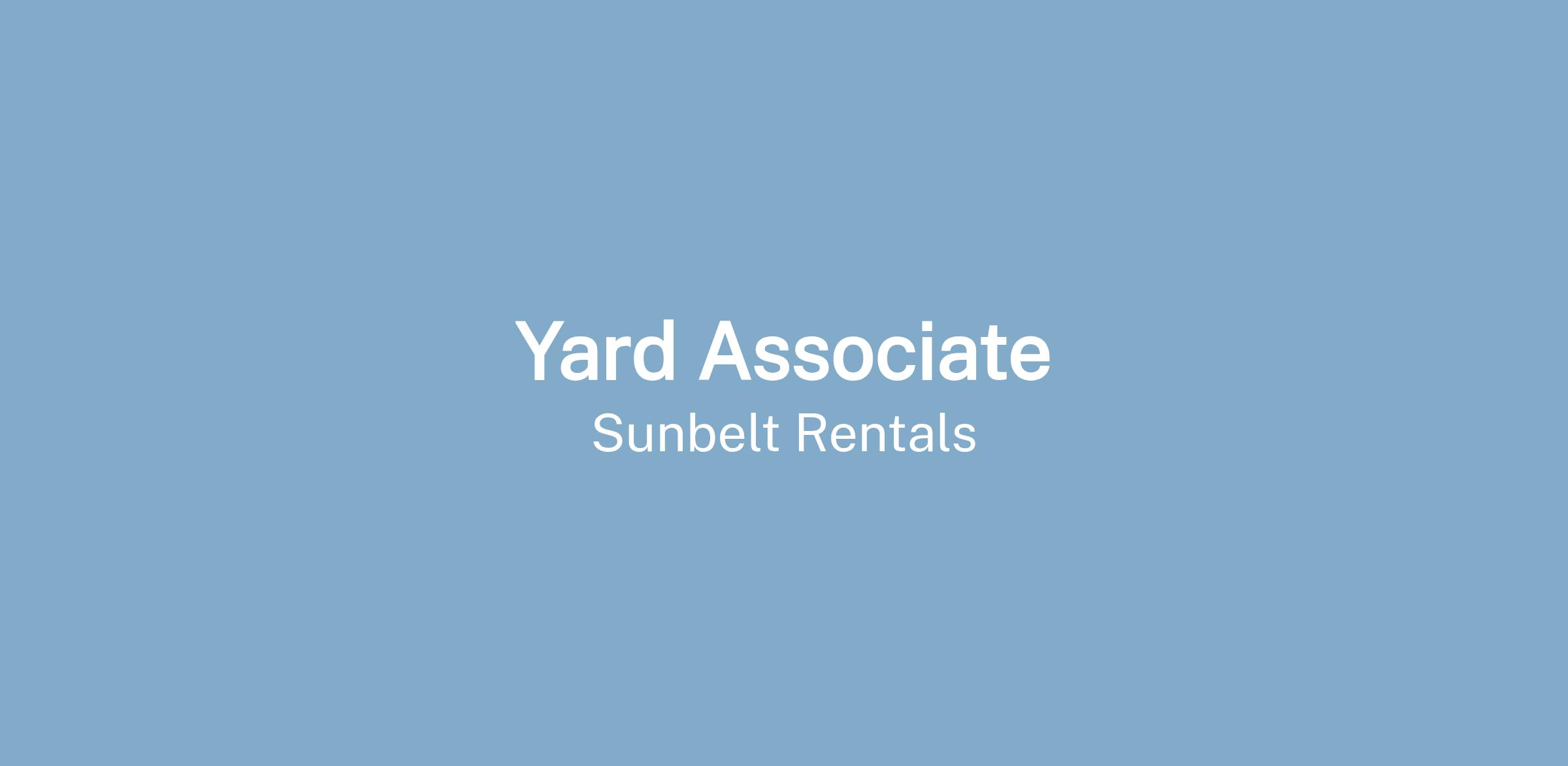 Sunbelt Rentals--the fastest growing rental business in North America--is seeking a Yard Associate.